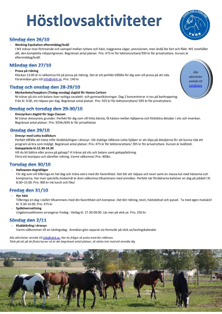 Höstlovsaktivitetervecka 44, 26 oktober – 2 november 2025