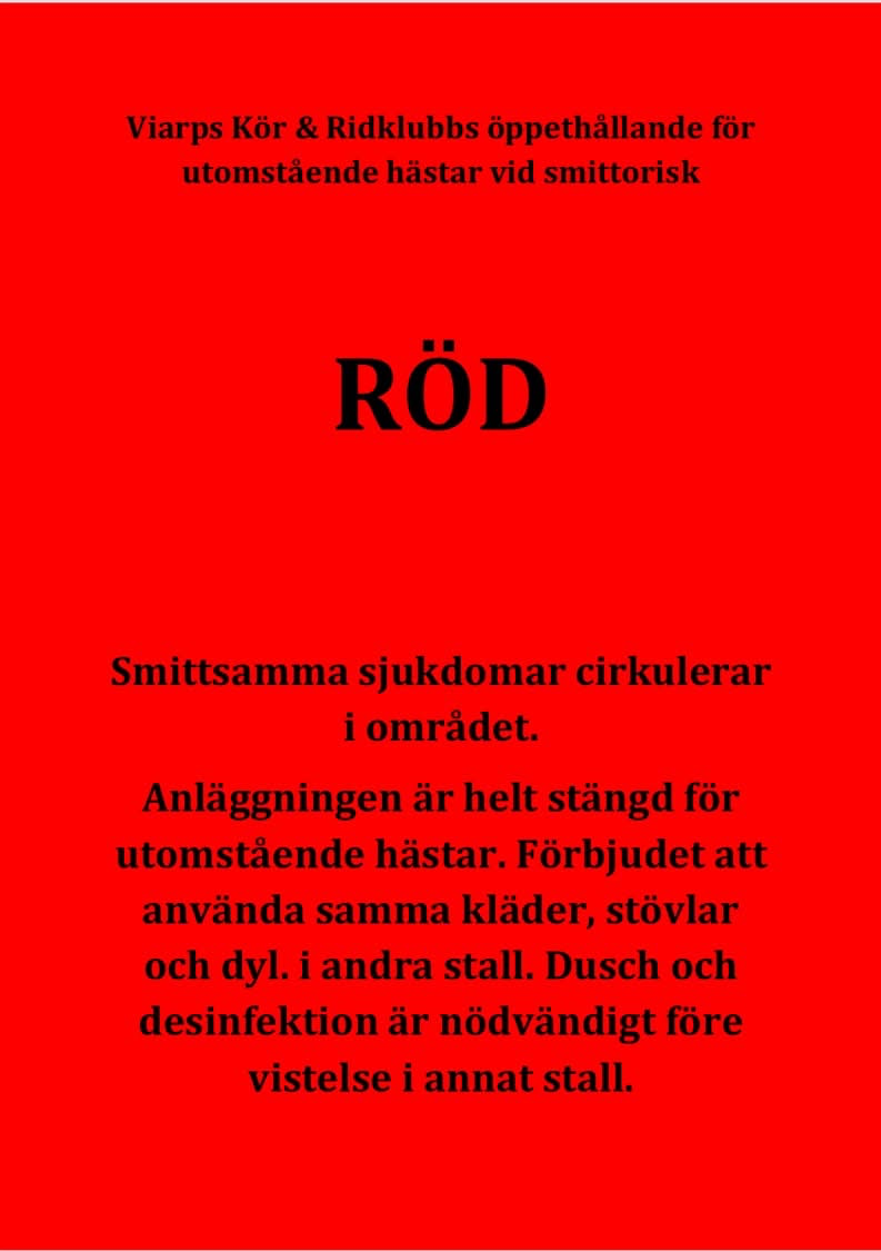 Viarps Kör & Ridklubbs stängd för utomstående hästar RÖD